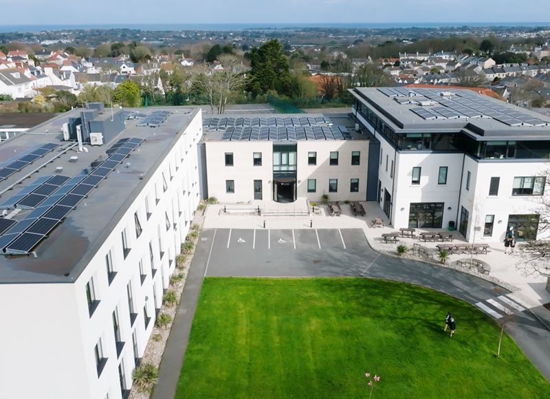 Guernsey Electricity and The Little Green Energy Company worked together to install a community-scale solar array on the roof of The Ladies’ College in Les Gravées, which began generating in January 2023. The 292 photovoltaic (PV) panels produce 120kWp - this is enough electricity to power around 34 homes, which will make it the third largest PV scale on-Island.
