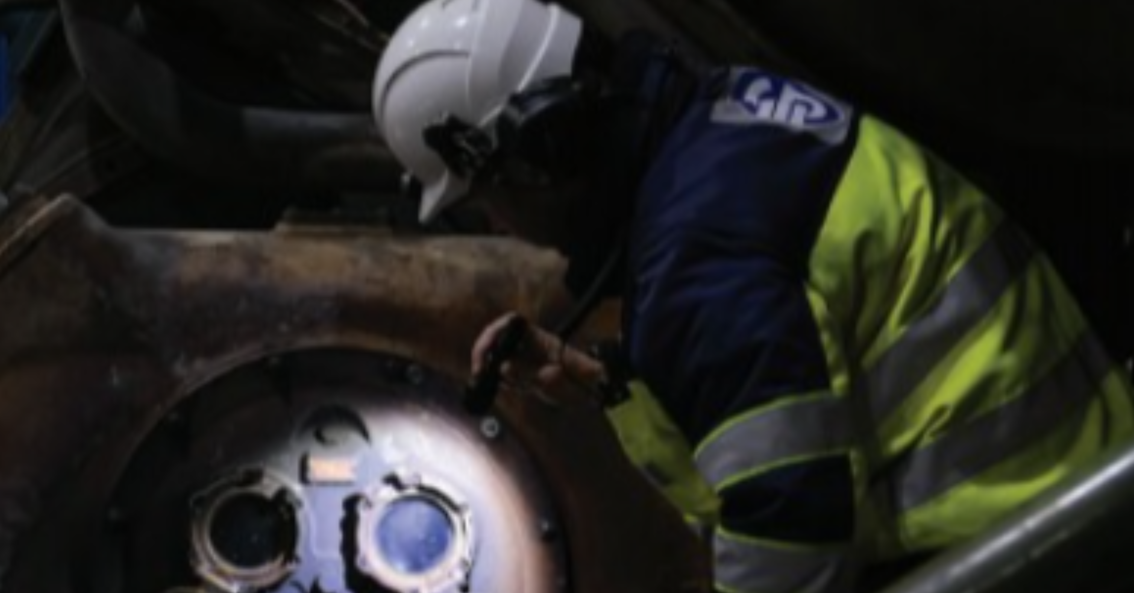 Here you can see inside one of the Heavy Fuel Oil (HFO) storage tanks while it was out of action for repair. A tank like this will hold roughly 2,200,000 litres of oil.