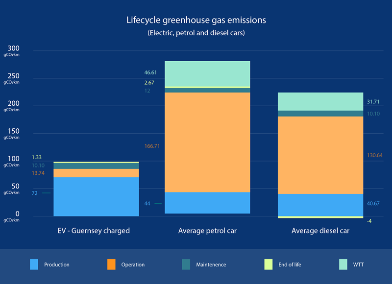 However to gauge the true impact driving has on our planet, Guernsey Electricity commissioned a study to understand the carbon emissions produced across the entire lifecycle of the vehicle in question.