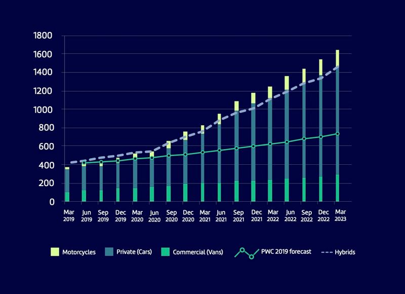 However as the number of electric cars driven in Guernsey gets recorded, you'll see there has been sharp increase over the last few years. This uptake exceeds the prediction made by PriceWaterhouse Coopers (PWC) in 2019 and helps demonstrate how the electrification of Guernsey has far outpaced initial forecasts.